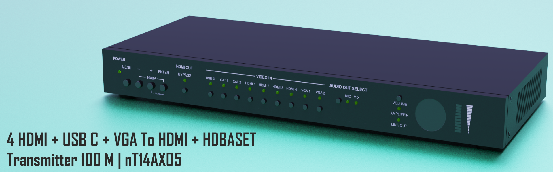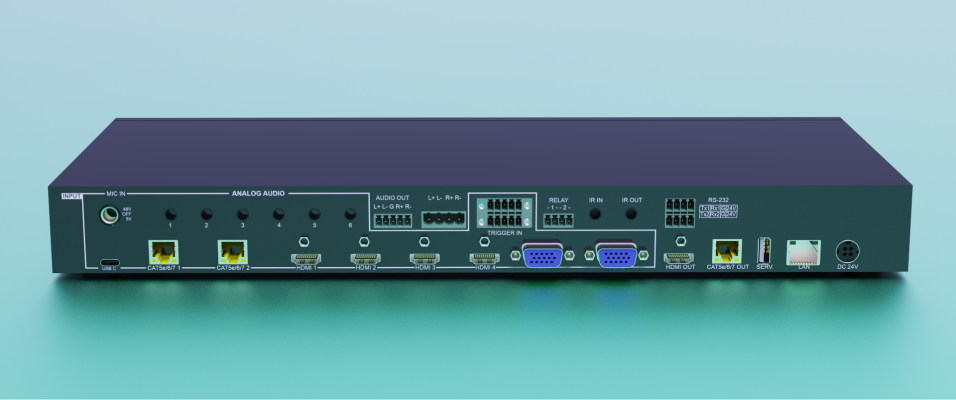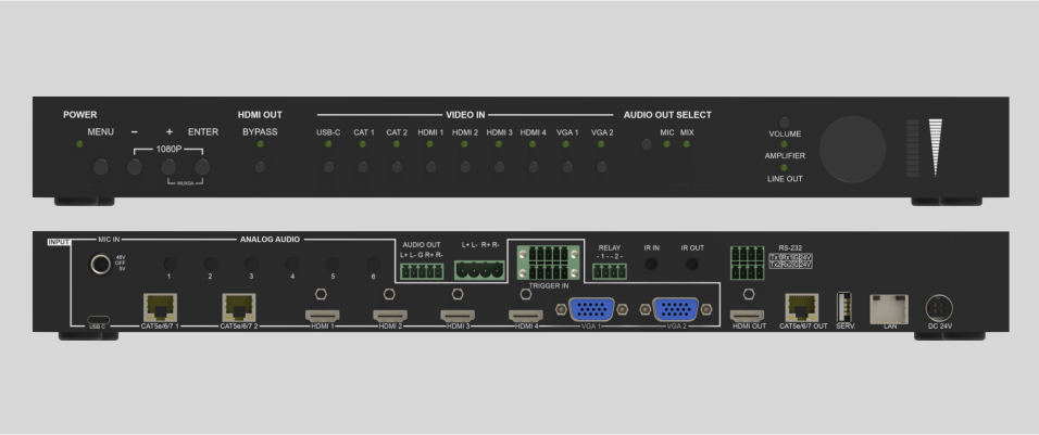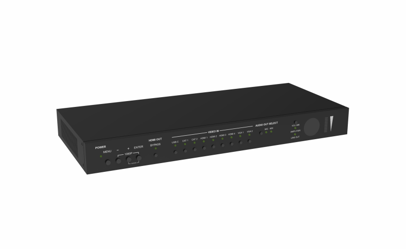 9 video inputs (1xUSB-C, 2xHDBaseT, 4xHDMI, 2xVGA)