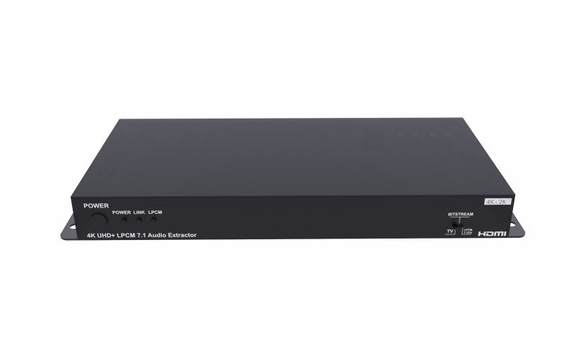This HDMI Audio Extractor can extract up to 8 channels of LPCM audio from an HDMI source, allowing the user to convert high quality lossless HDMI audio into multi-channel analog signals for use with powered speakers or non-HDMI AV receivers. Bitstream extraction is also supported via an optical S/PDIF output.