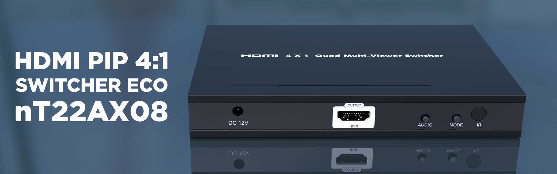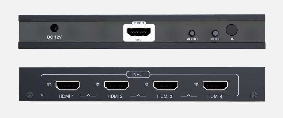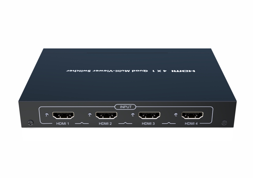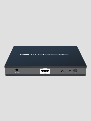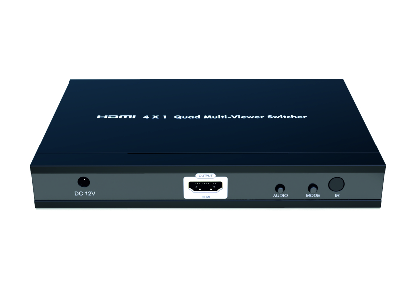 nT22AX08 quad multi viewer switcher, with 4 HDMI inputs, and 1 HDMI output, displays video from four HDMI source device simultaneously on a single monitor, switch to control any of the four source devices while monitoring the other three devices supports different display modes full image, picture besides picture, quad it has IR remote and manual front panel button selection it support resolution up to 1080p 60 HZ Applicable for control rooms training rooms surveillance