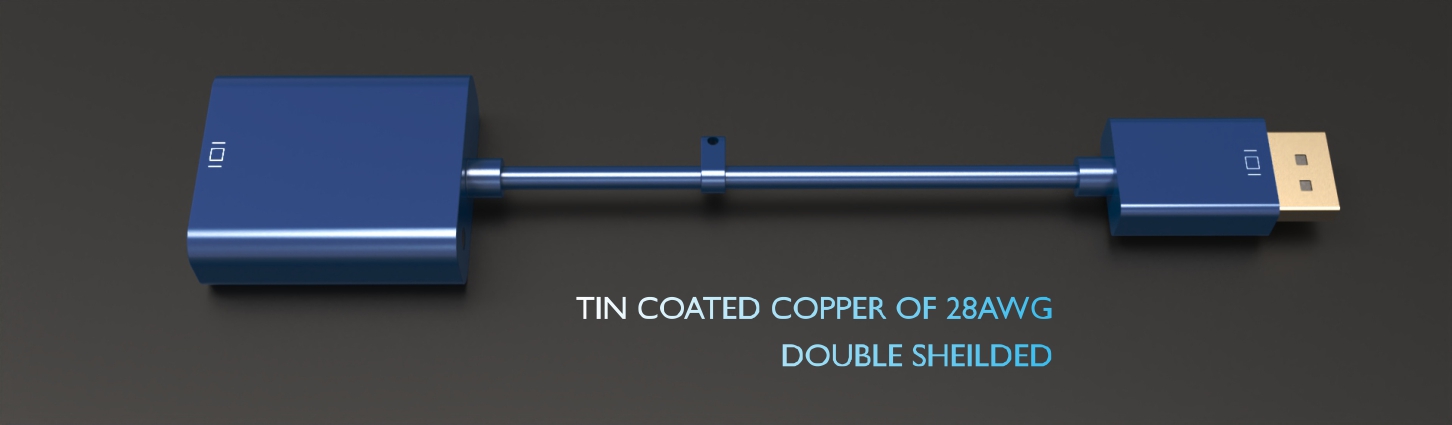 nT03BX10 Displayport m to vga f pigtail helps to connect devices like computer , and laptops with displayport outputs to display and projectors with vga input . Display port is source and vga is for display . It supports resolution of 1920 * 1200 – the cable is made up of tin coated copper of 28 awg – it is double shielded to provide the best disturbance less signals . It is provided with anti theft tie hole – so that it can be tied to the display cable – avoiding misplacement and theft .available length 200 mm colour – ral 5008 – blue black.